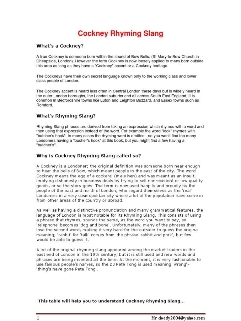 Old Mother Hubbard went to the cupboard to get her poor doggie a bone line from nursery rhyme Old enough to be your mother. Pearly king pearly queen pearly kings and queens costermongers pearly organisation pearly guild pearly society cockney museum george. Mate cockney rhyming slang English southern -- principally cockney -- slang makes french scoff.